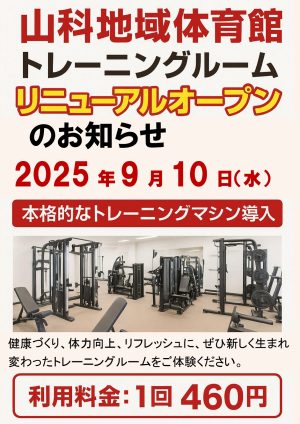 山科地域体育館 トレーニングルーム リニューアルオープンのお知らせ <2025年9月10日〜2026年3月31日>