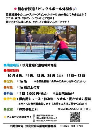 【北堀】初心者歓迎!ピックルボール体験会! <2025年10月4日〜25日>