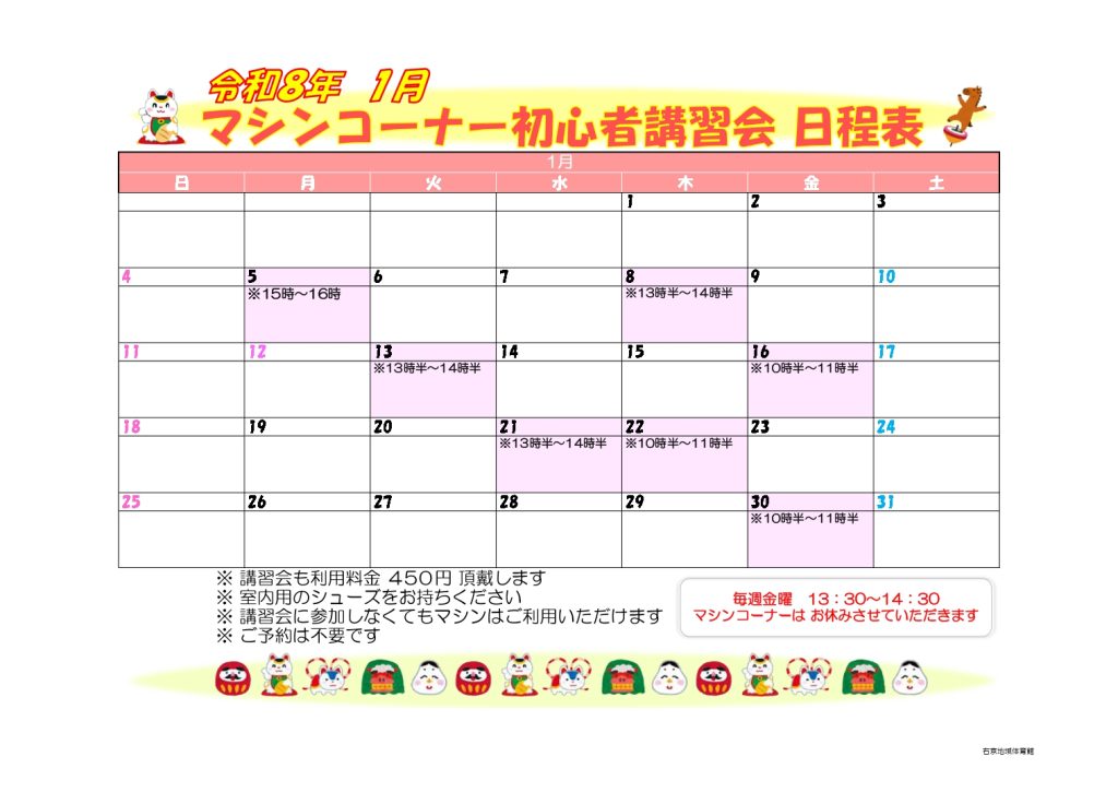 付属設備の内容及び料金については、施設にお問合せください。 - 利用中に種目を変更される場合、使用した時点で1時間分の料金が発生します。