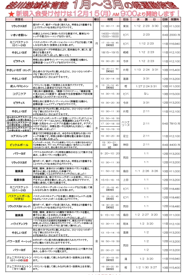 1〜12番全員当選となりました。窓口にて申込と受講料のお支払いをお願いいたします。