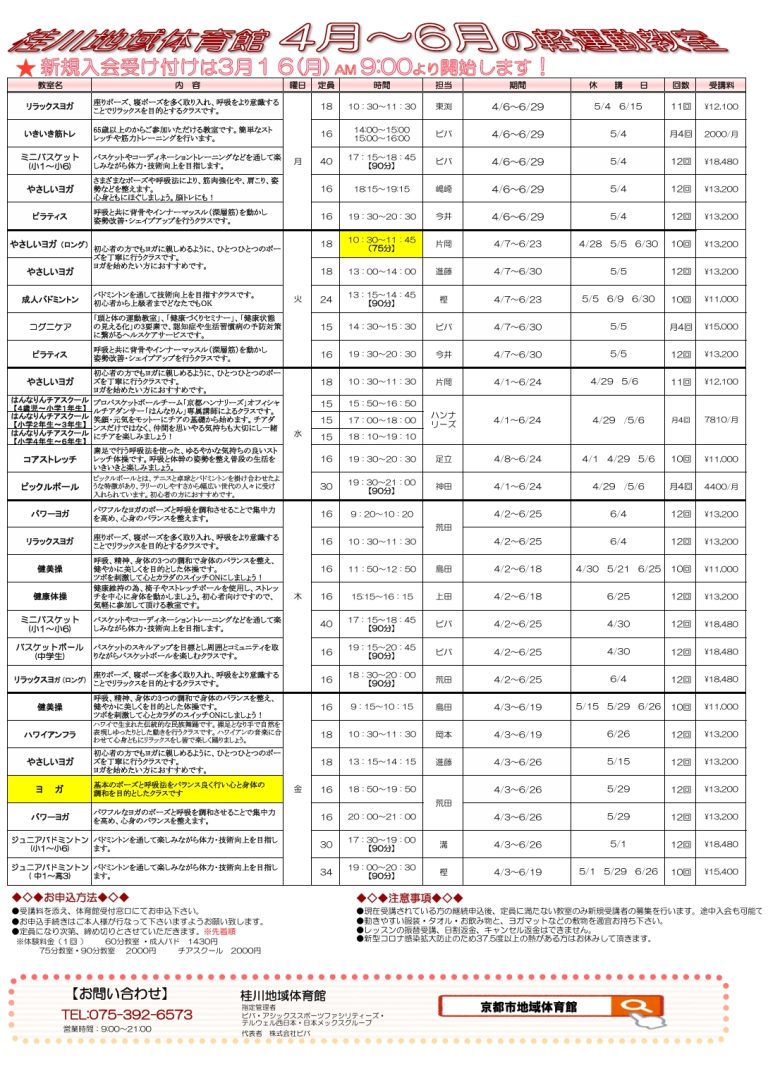 桂川地域体育館📞075-392-6573(9~20時)