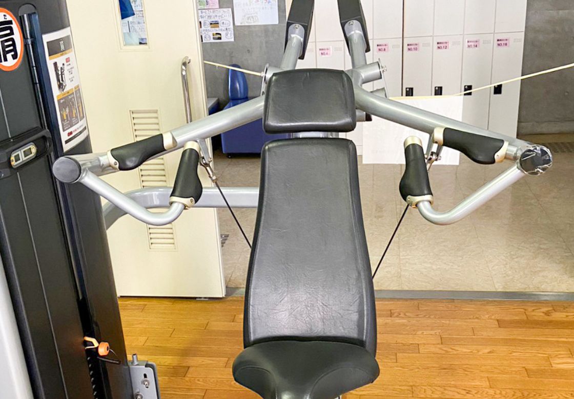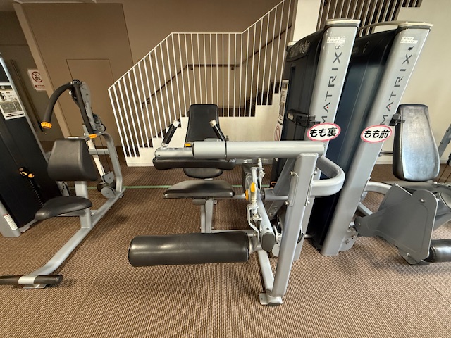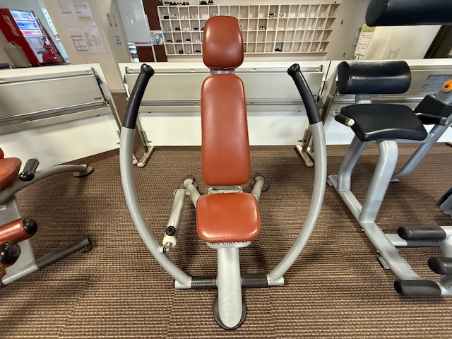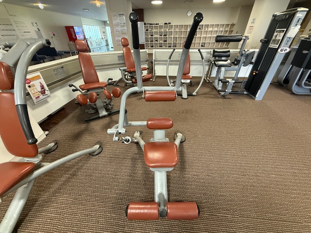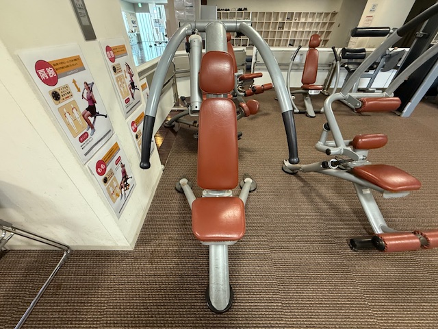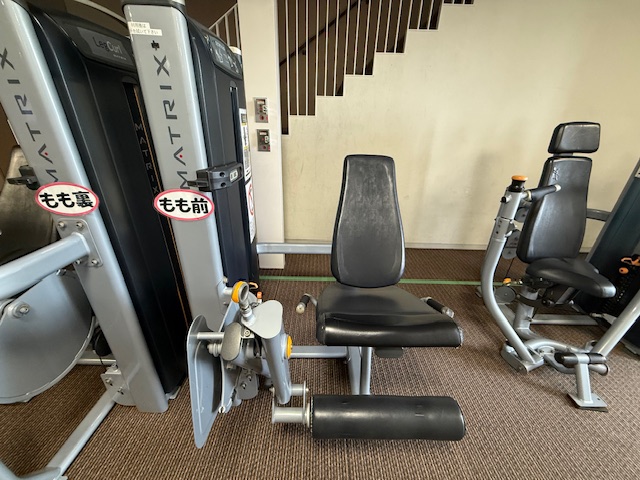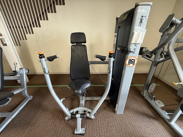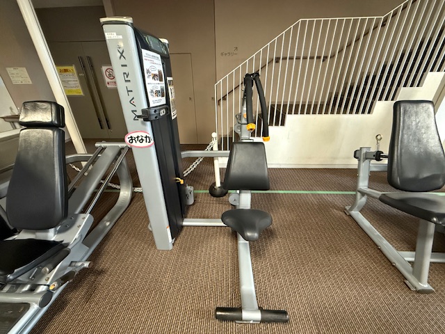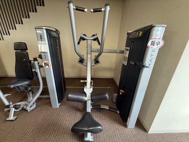 - アブドナミル/ショルダープレス/チェストプレス/トライセプスプレス/バイセプスカール/バックエクステンション/ベクトラルフライ/ラットプルダウン/レッグエクステンション/レッグカール/レッグプレス/背筋台/腹筋台