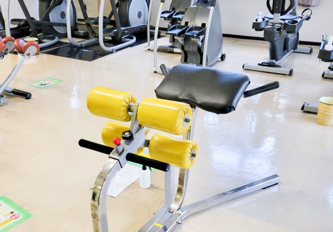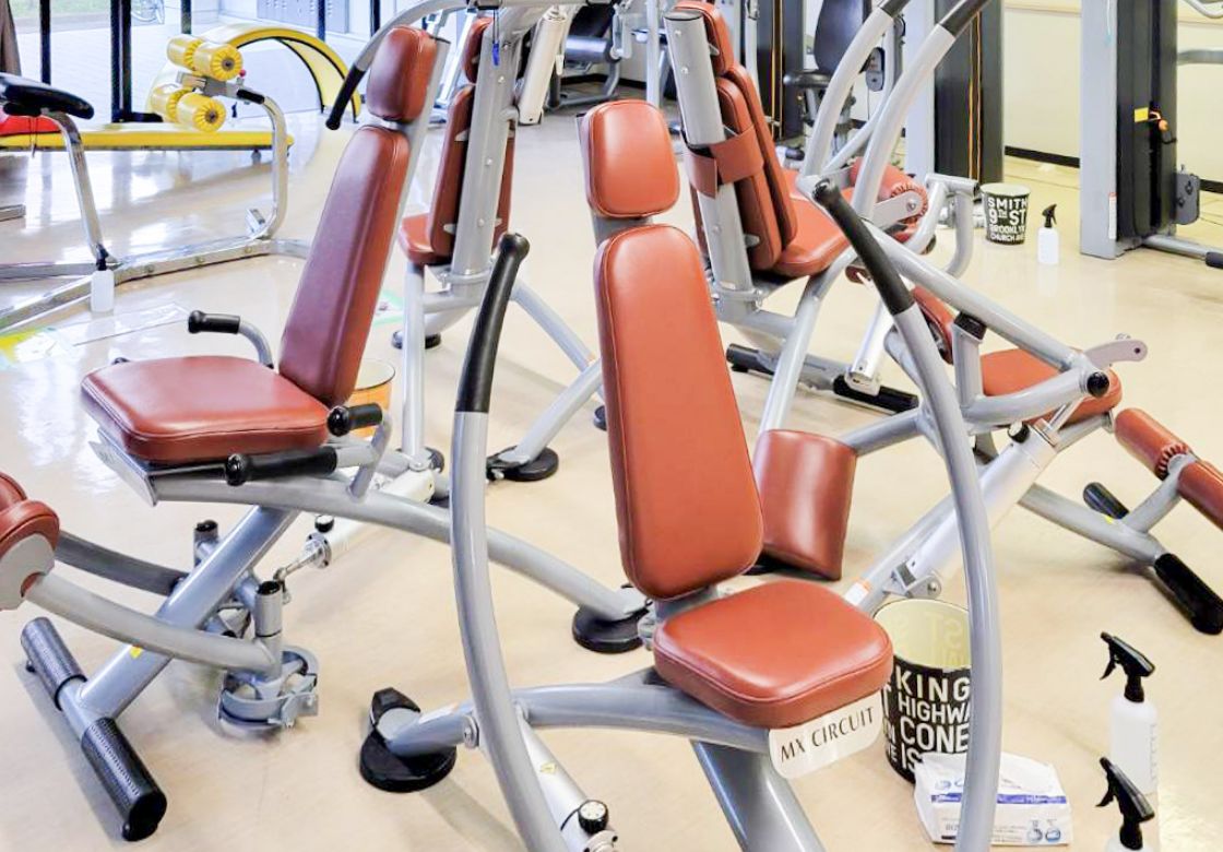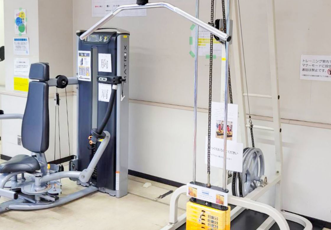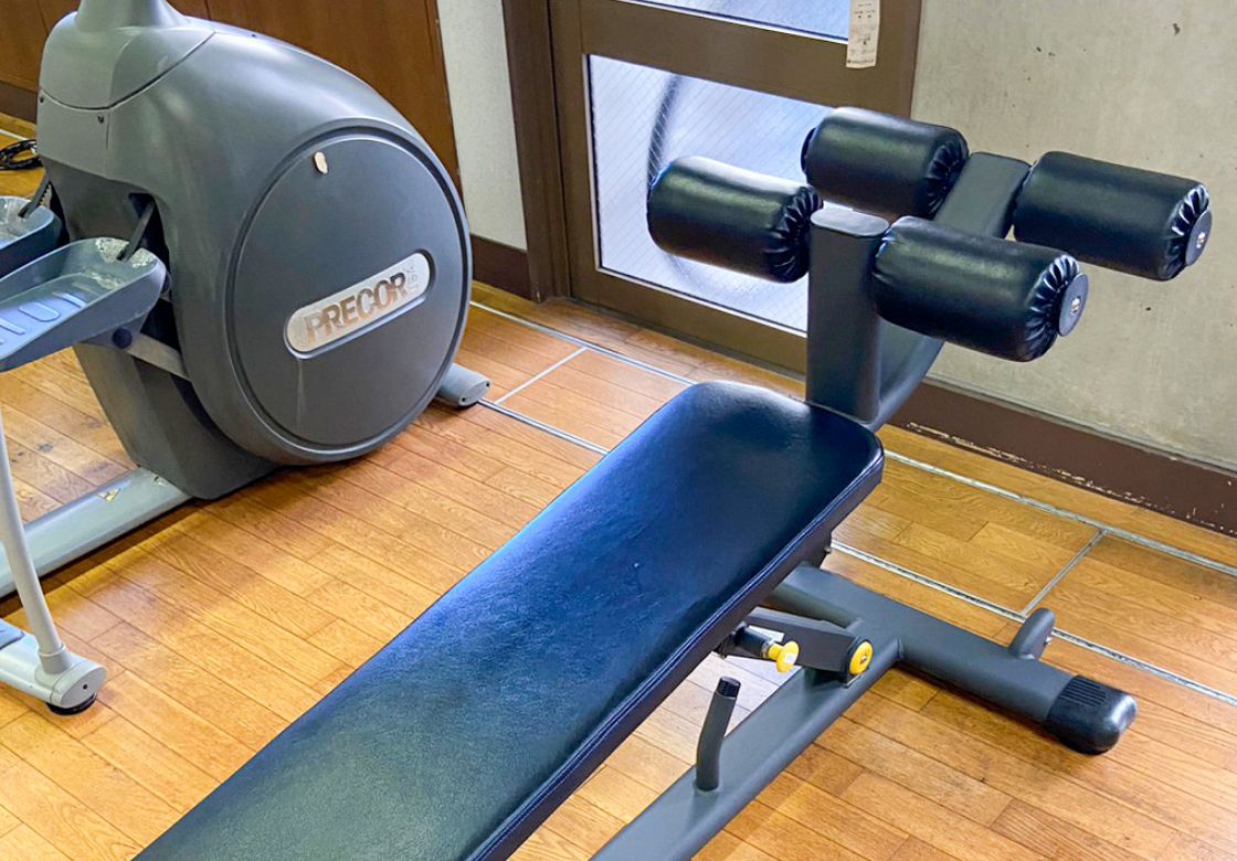 - アブドナミル/ショルダープレス/チェストプレス/トライセプスプレス/バイセプスカール/バックエクステンション/ベクトラルフライ/ラットプルダウン/レッグエクステンション/レッグカール/レッグプレス/背筋台/腹筋台